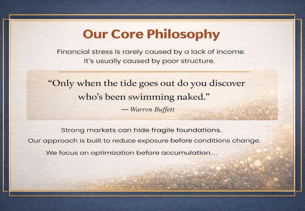 Our approach replaces discipline-heavy planning with systems that bring structure to your finances and clarity to your financial timeline — even as life changes.